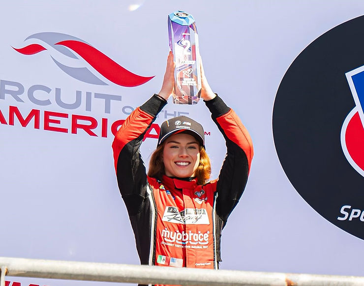 Courtney Crone has spent her entire life chasing speed—from traveling California tracks as a toddler with her father’s vintage racing team to competing in the F1 Academy as part of the Haas Driver Development Program. Her career is a testament to sheer persistence and versatility across dirt ovals, road courses, and prototype racing.
